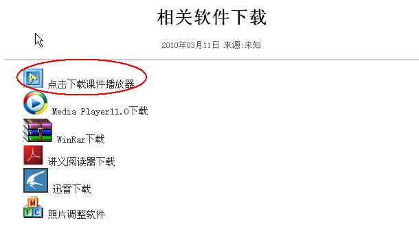 5.進入軟件下載頁面,選擇“點擊下載課件播放器”下載并安裝成功