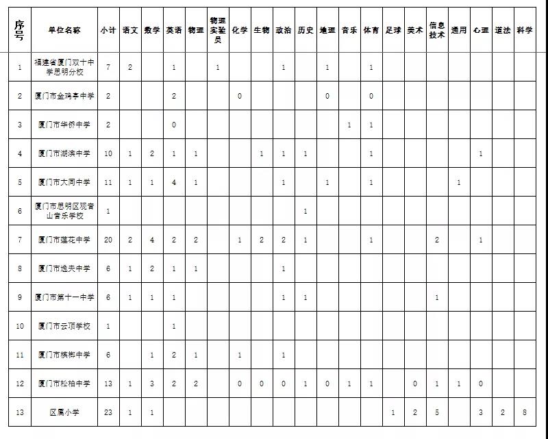 附件2:2021年廈門市思明區(qū)區(qū)屬學(xué)校招聘計劃
