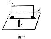 1、如圖那樣,在桌面上鋪一張大紙,紙上立一塊玻璃板作為平面鏡。