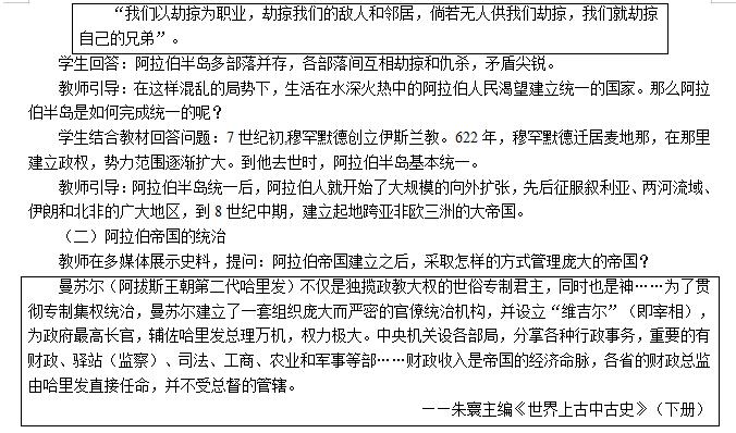 教師追問:阿拉伯地區(qū)曾建立起地跨亞非歐的強(qiáng)大帝國,歷史上的阿拉伯帝國是如何建立和發(fā)展的?順勢導(dǎo)入新課。