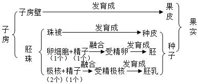 C.胚珠發(fā)育成種子 D.子房壁發(fā)育成種皮