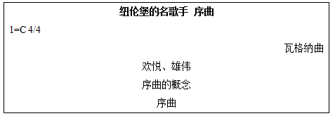 好的導入是成功的一半,為了培養(yǎng)學習的興趣、營造濃郁的音樂課堂氛圍,上課伊始,我會用設疑引導法進行導入,依次演唱《飲酒歌》《再見吧,大地》,請學生搶答曲名,并提問這些選自什么,屬于什么體裁?學生自由回答。我來總結(jié):都選自歌劇,順勢揭示課題歌劇序曲《紐倫堡的名歌手》。