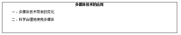 本著新課程標準,吃透教材,了解學生特點的基礎,在本課中,我將多媒體技術的價值和意義設為本節(jié)課的教學重點;而將多媒體技術發(fā)展的趨勢確定為本課的難點。