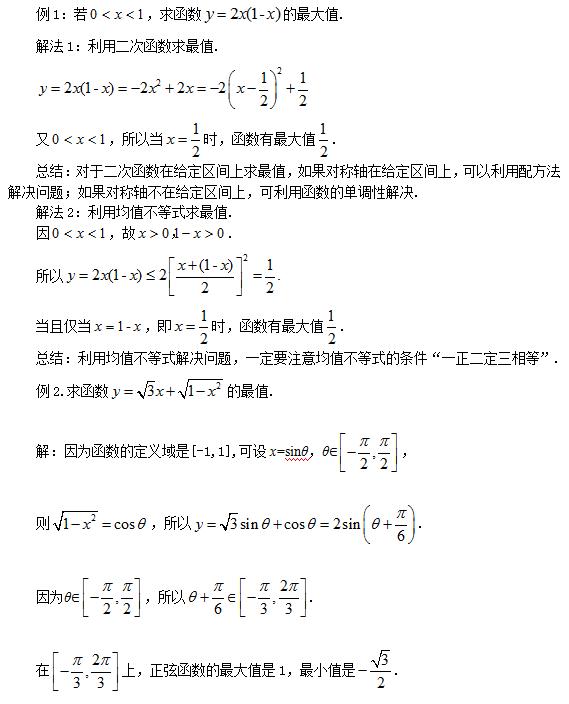 下面就兩道例題談?wù)勅绾螒?yīng)用這三種方法求最值的.
