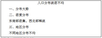 本節(jié)教材講述中國的人口這節(jié)課,共2課時(shí),人口分布疏密不均是第2課時(shí)內(nèi)容。主要講了我國人口分布大勢、我國人口地區(qū)分布不均這兩個(gè)部分內(nèi)容。本部分內(nèi)容,是對前兩節(jié)中國疆域和行政區(qū)劃的自然引申,是掌握好我國人口分布特點(diǎn)的重要環(huán)節(jié)。