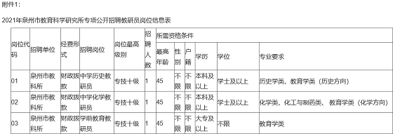 附件:1.2021年泉州市教育科學(xué)研究所專項(xiàng)公開招聘教研員崗位信息表