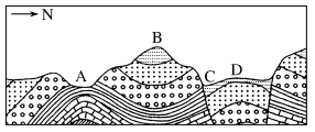 2.圖中A、B、C、D四地地質(zhì)構(gòu)造類型依次是( )。