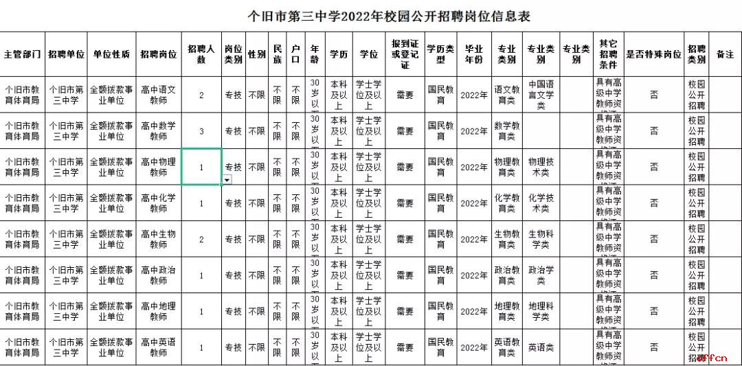 1.個舊市第三中學(xué)2022年校園公開招聘崗位信息表 |