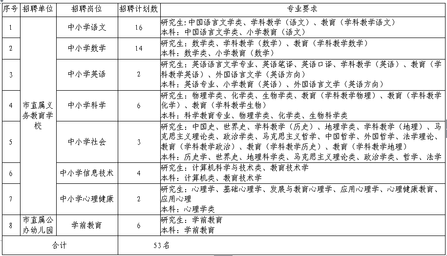 附件1:2021年下半年舟山市教育局直屬義務(wù)教育學(xué)校和公辦幼兒園公開招聘教師計劃表