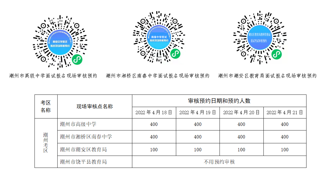 按照疫情防控要求和市區(qū)報名人數(shù)增加,潮州市高級中學(xué)、潮州市湘橋區(qū)南春中學(xué)和潮安區(qū)教育局現(xiàn)場審核點實行手機(jī)小程序預(yù)約報名審核,饒平縣教育局審核點因報名人數(shù)不多不用預(yù)約。具體預(yù)約操作如下圖。
