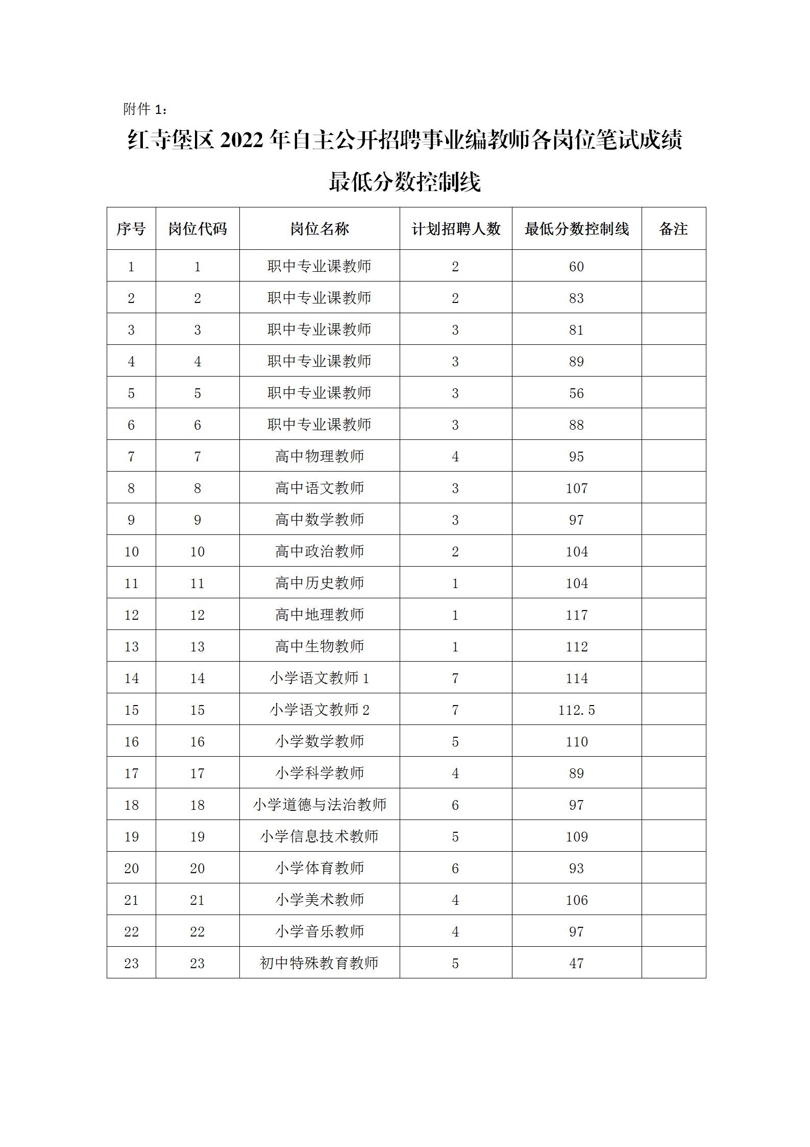 根據(jù)《吳忠市紅寺堡區(qū)2022年自主公開招聘事業(yè)編教師公告》有關(guān)規(guī)定,經(jīng)紅寺堡區(qū)自主公開招聘事業(yè)編教師工作領(lǐng)導(dǎo)小組研究同意,現(xiàn)就2022年紅寺堡區(qū)自主公開招聘事業(yè)編教師各崗位筆試最低分?jǐn)?shù)控制線公告如下: