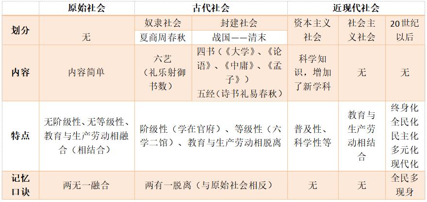 教育的發(fā)展主要經(jīng)歷了原始形態(tài)的教育、古代社會(huì)的教育以及近現(xiàn)代社會(huì)的教育三大階段,其中古代社會(huì)的教育考頻最高,一定要將高頻知識(shí)點(diǎn)牢牢掌握。