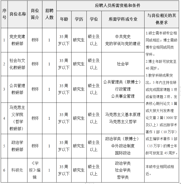3.自覺遵守黨的政治紀(jì)律和政治規(guī)矩,具有較高的理論水平,能勝任黨校教學(xué)科研工作;