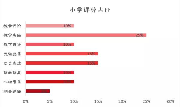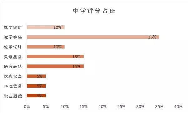 各個(gè)評(píng)價(jià)標(biāo)準(zhǔn)的占比如下,重要的當(dāng)然是「教學(xué)實(shí)施」環(huán)節(jié)。
