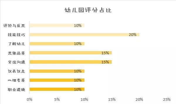 幼兒園的評(píng)分標(biāo)準(zhǔn)和中小學(xué)的稍有不同,一方面更看重老師對(duì)幼兒的特征是否足夠了解,需要更有親和力;另一方面看中老師的才藝,如講故事、彈琴、手工制作,好有十八般武藝。