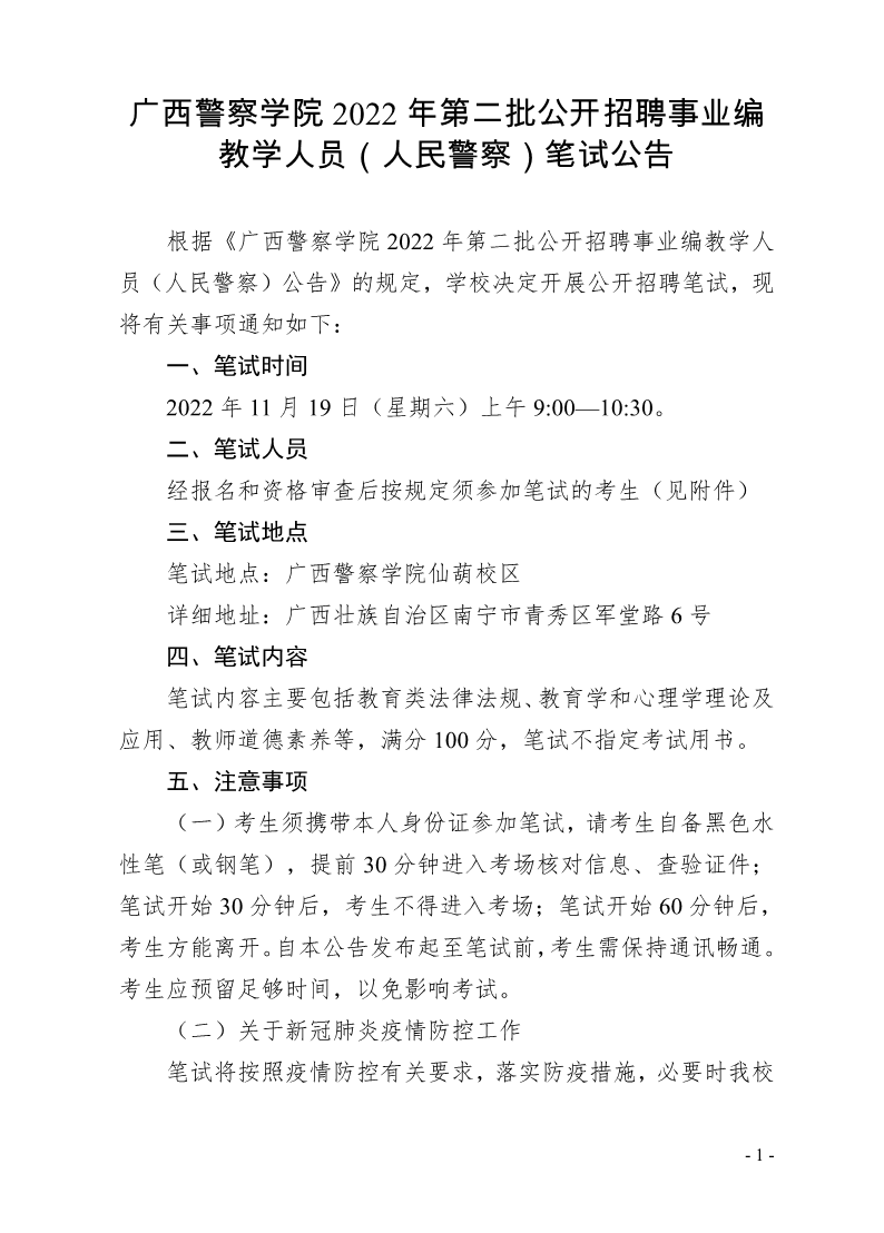 原文標(biāo)題:廣西警察學(xué)院2022年第二批公開招聘事業(yè)編教學(xué)人員(人民警察)筆試公告_通知公告_新聞中心_廣西警察學(xué)院