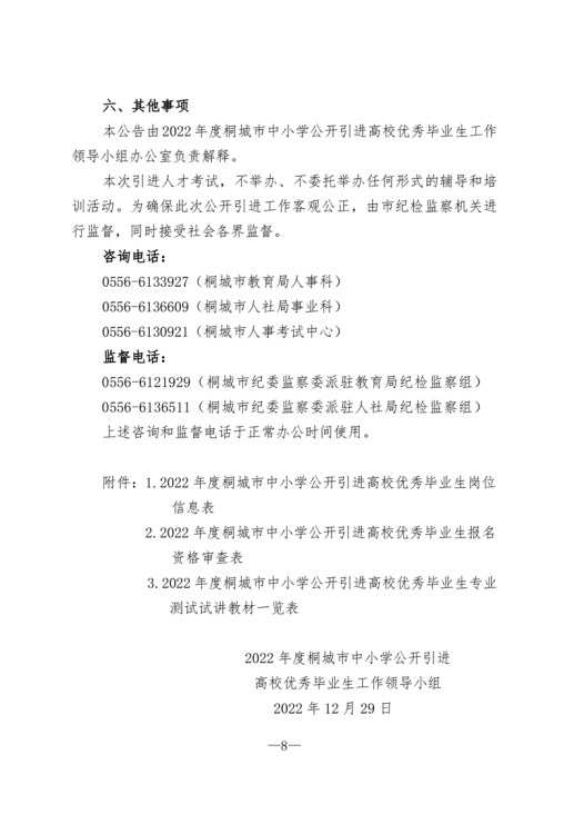 原文標(biāo)題:2022年安徽安慶桐城市中小學(xué)公開引進(jìn)高校優(yōu)秀畢業(yè)生教師公告【23人】