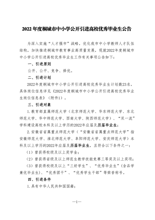 2022年安徽安慶桐城市中小學(xué)公開引進(jìn)高校優(yōu)秀畢業(yè)生教師公告【23人】