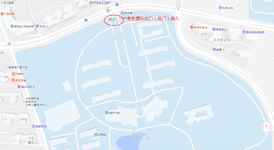 注意:考生僅能從學(xué)校北門(mén)進(jìn)入考點(diǎn)。學(xué)校北門(mén)方位見(jiàn)下圖,請(qǐng)考生提前規(guī)劃路線,避免耽誤考試。