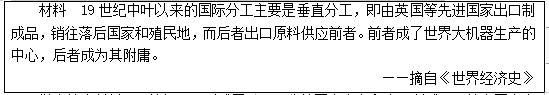 學(xué)生結(jié)合材料,回答問題:形成了西歐、北美國家生產(chǎn)和出口制成品,其余國家生產(chǎn)和出口初級產(chǎn)品的國際分工和貿(mào)易格局,快速的交通工具將工業(yè)產(chǎn)品輸送到世界各地。