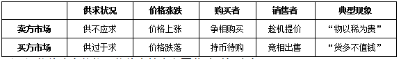 當(dāng)商品供不應(yīng)求,商品的價格就會上升。當(dāng)商品的價格高于價值,此時,這個市場就成為了賣方市場。反之,當(dāng)市場中供大于求,價格下跌,對購買者有利,稱為買方市場。
