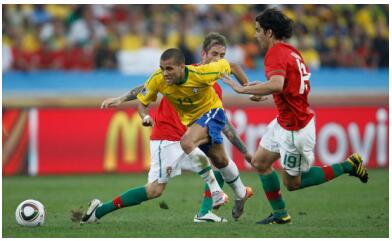 2010年南非世界杯小組賽交戰(zhàn)中的巴西隊與葡萄牙隊