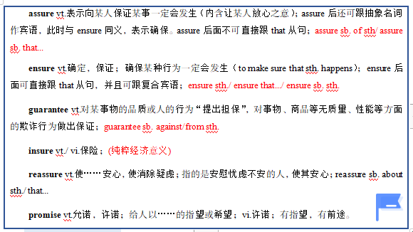 assure, ensure, guarantee, insure, reassure, promise都含有“保證”之意