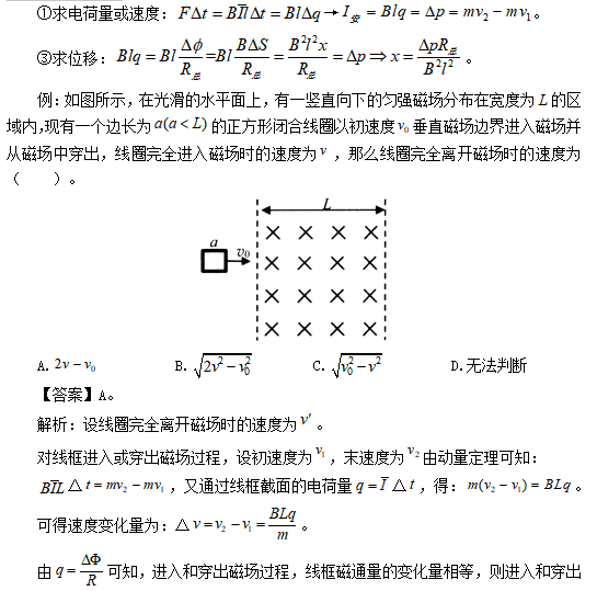 在電磁感應中,動量定理應用于單桿切割磁感線運動,可求解變力的時間、速度、位移和電荷量。