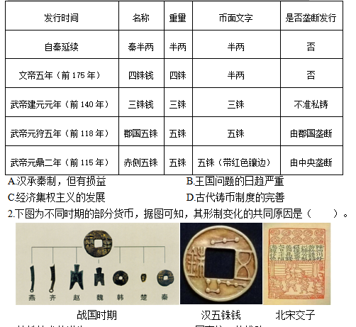 1.秦漢代發(fā)行鑄幣的基本情況如表。表中鑄幣變化反映出( )。