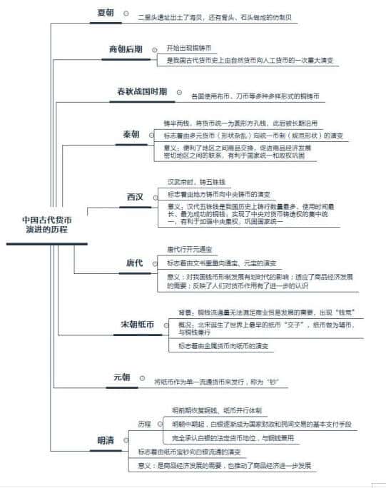 就中國古代而言,貨幣的基本形態(tài)是銅鑄幣。宋朝出現(xiàn)紙幣,元朝紙幣成為唯一法定的貨幣。明清時(shí)期,紙幣地位下降,出現(xiàn)白銀貨幣化的趨勢。教師招聘考試中常常會(huì)從各個(gè)朝代的貨幣制度,帶來的影響和古代貨幣演變的趨勢等方面進(jìn)行考查,因此我們將中國古代貨幣的演進(jìn)歷程進(jìn)行簡要的梳理,為大家提供相應(yīng)習(xí)題,供大家參考。
