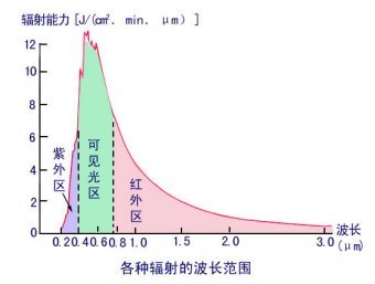 太陽輻射的波長范圍主要集中在0.15~4.0微米之間,太陽輻射的能量主要集中在可見光區(qū)。