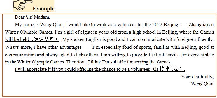 2022年北京——張家口冬奧會(huì)將在北京和張家口舉行,為了確保冬奧會(huì)圓滿成功,組委會(huì)發(fā)起了志愿者招募活動(dòng)。假如你是北京某中學(xué)學(xué)生王倩,希望能成為一名志愿者。請(qǐng)按要求用英文給組委會(huì)寫一封申請(qǐng)信,內(nèi)容如下: