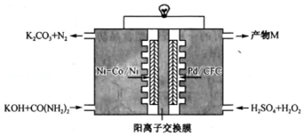 A.過氧化氫—尿素電池工作時,尿素失去電子被氧化為負極即Ni—Co/Ni極,H2O2得到電子被還原為正極即Pd/CFC極,所以Ni—Co/Ni極上的電勢比Pd/CFC極上的低,故A正確;