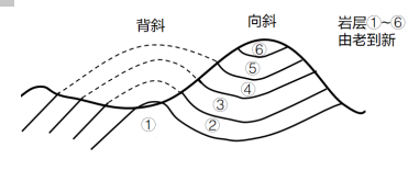 巖層新老關系:中心部分巖層較老,兩翼巖層較新。