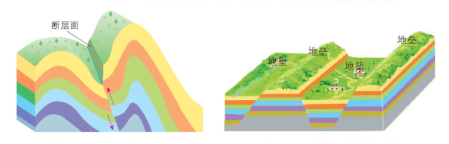 巖層受力達到一定的強度,發(fā)生斷裂,兩側的巖層沿斷裂面產生顯著的位移。