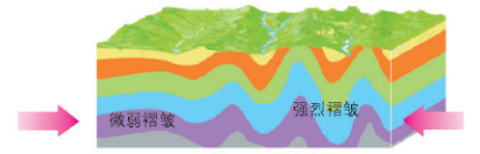 巖層在強大的擠壓作用下,發(fā)生塑性變形,產生一系列的波狀彎曲。