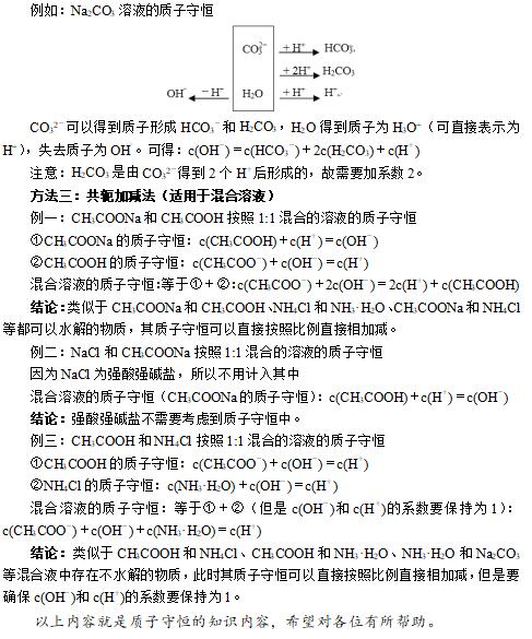 質(zhì)子守恒=電荷守恒-物料守恒,得到:c(CH3COOH)+c(H+)=c(OH-)