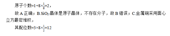 【答案】A。解析:A.金屬晶體的體心立方密堆積的結(jié)構(gòu)中,每個(gè)晶胞中