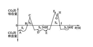 該圖表示植物夏季連續(xù)兩晝夜對CO2吸收量和釋放量的變化曲線圖,S1~S2表示曲線與橫軸圍成的面積。請據(jù)題回答問題。