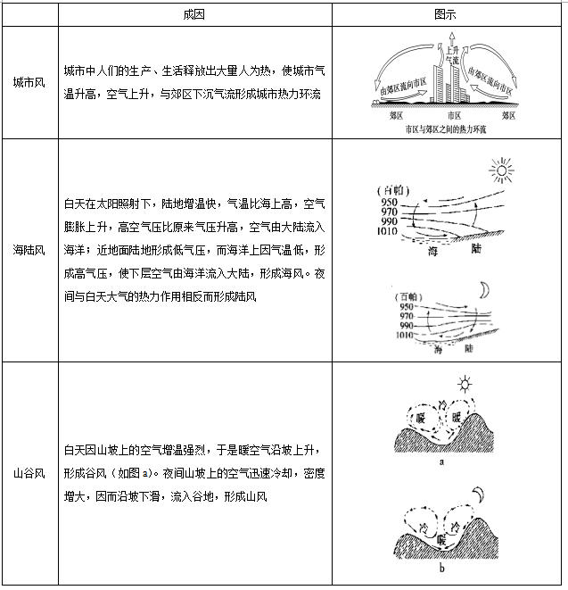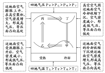 (1)熱上升、冷下沉——近地面熱空氣上升,近地面冷空氣下沉。
