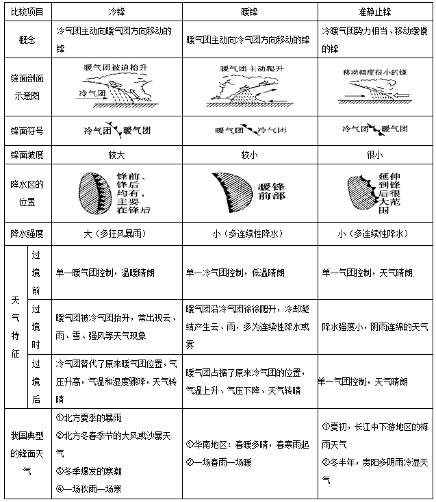 單一氣團(tuán)控制,天氣穩(wěn)定;氣團(tuán)交替控制,天氣變化。