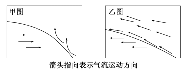 1.甲、乙兩圖中,受鋒面影響可能產(chǎn)生的天氣現(xiàn)象是( )。