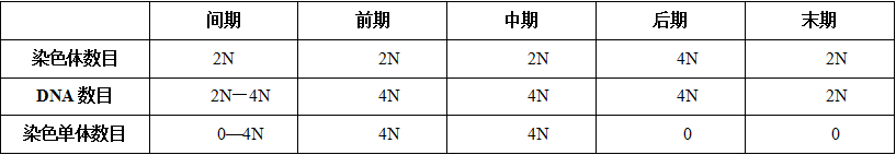 (3)有絲分裂過程中染色體數(shù)目、DNA 數(shù)目和染色單體的數(shù)目的變化
