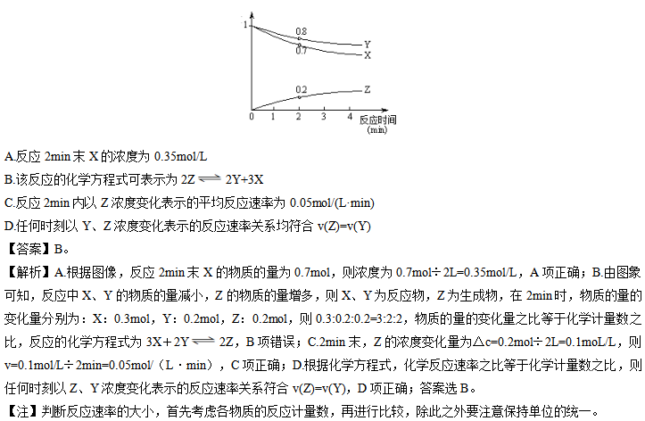 例1:某條件下,在2L密閉容器中,X、Y、Z三種氣體的物質(zhì)的量隨時(shí)間的變化曲線(xiàn)如圖所示。下列有關(guān)說(shuō)法不正確的是( )。