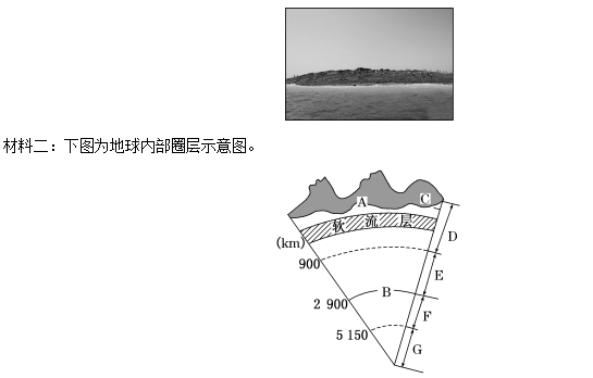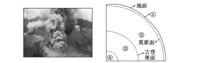 2013年6月27日上午,俄羅斯遠(yuǎn)東堪察加半島北部的希韋盧奇活火山噴發(fā)。讀火山噴發(fā)景觀圖和地球內(nèi)部圈層結(jié)構(gòu)圖,完成3~4題。