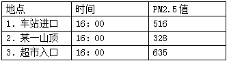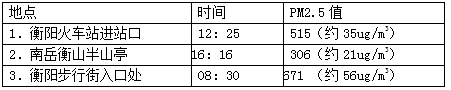 (2)2012年冬天,衡陽市多名志愿者對衡陽幾個地點(diǎn)的空氣中PM2.5進(jìn)行了檢測,結(jié)論如表.請問這幾個地點(diǎn)的空氣質(zhì)量由好到壞的排列次序是【C】