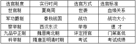 知識點(diǎn) 選官用官制度的變化