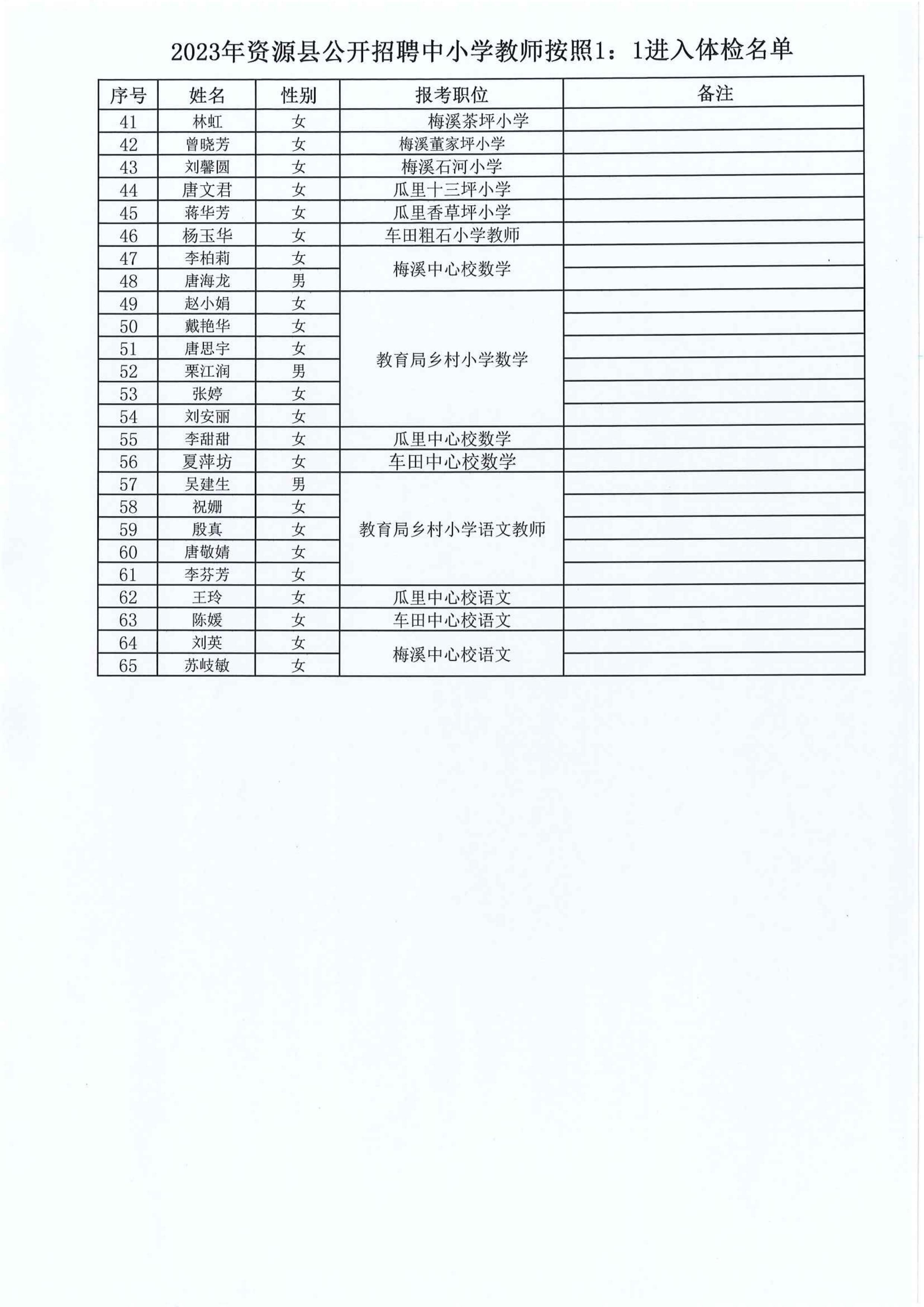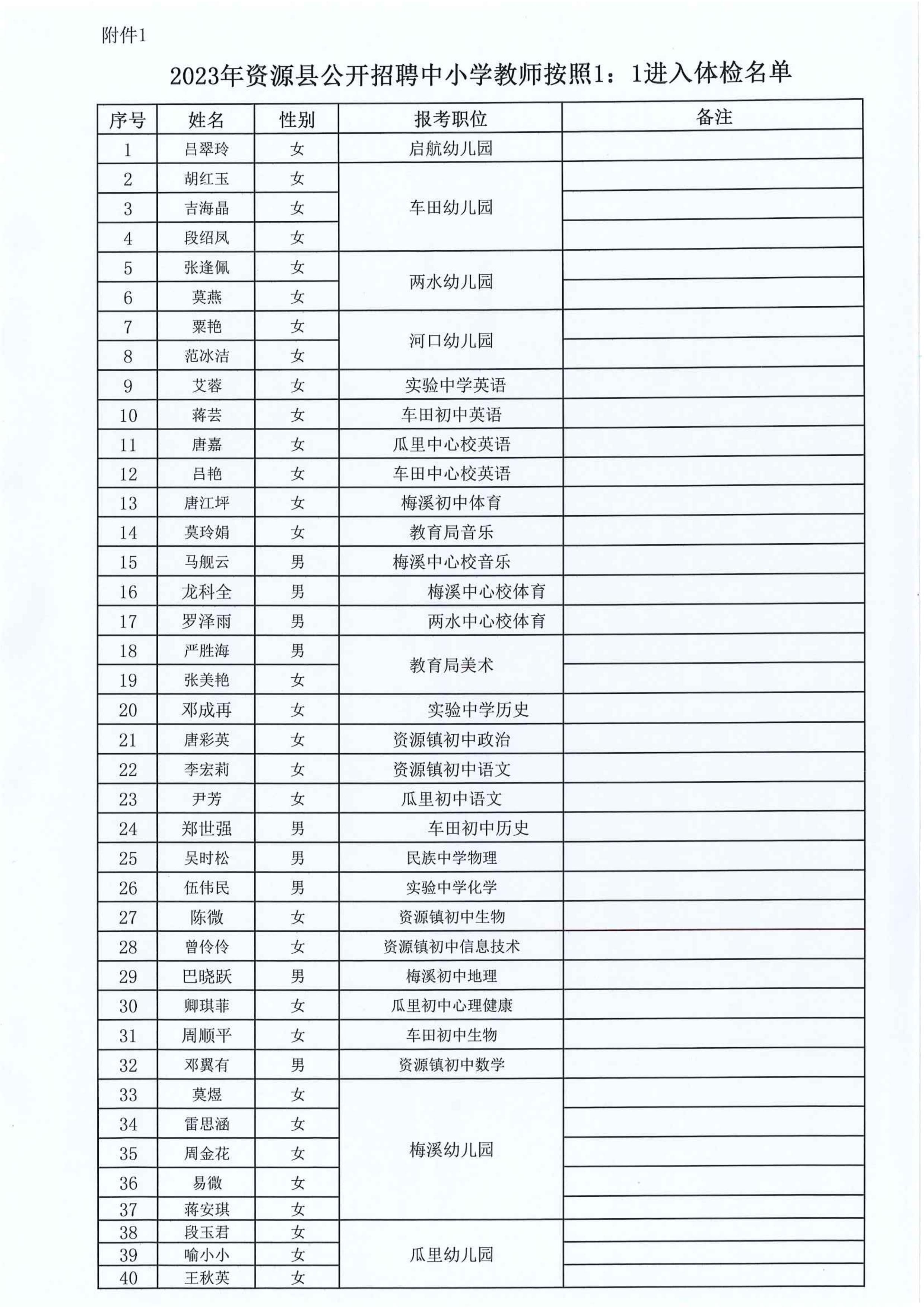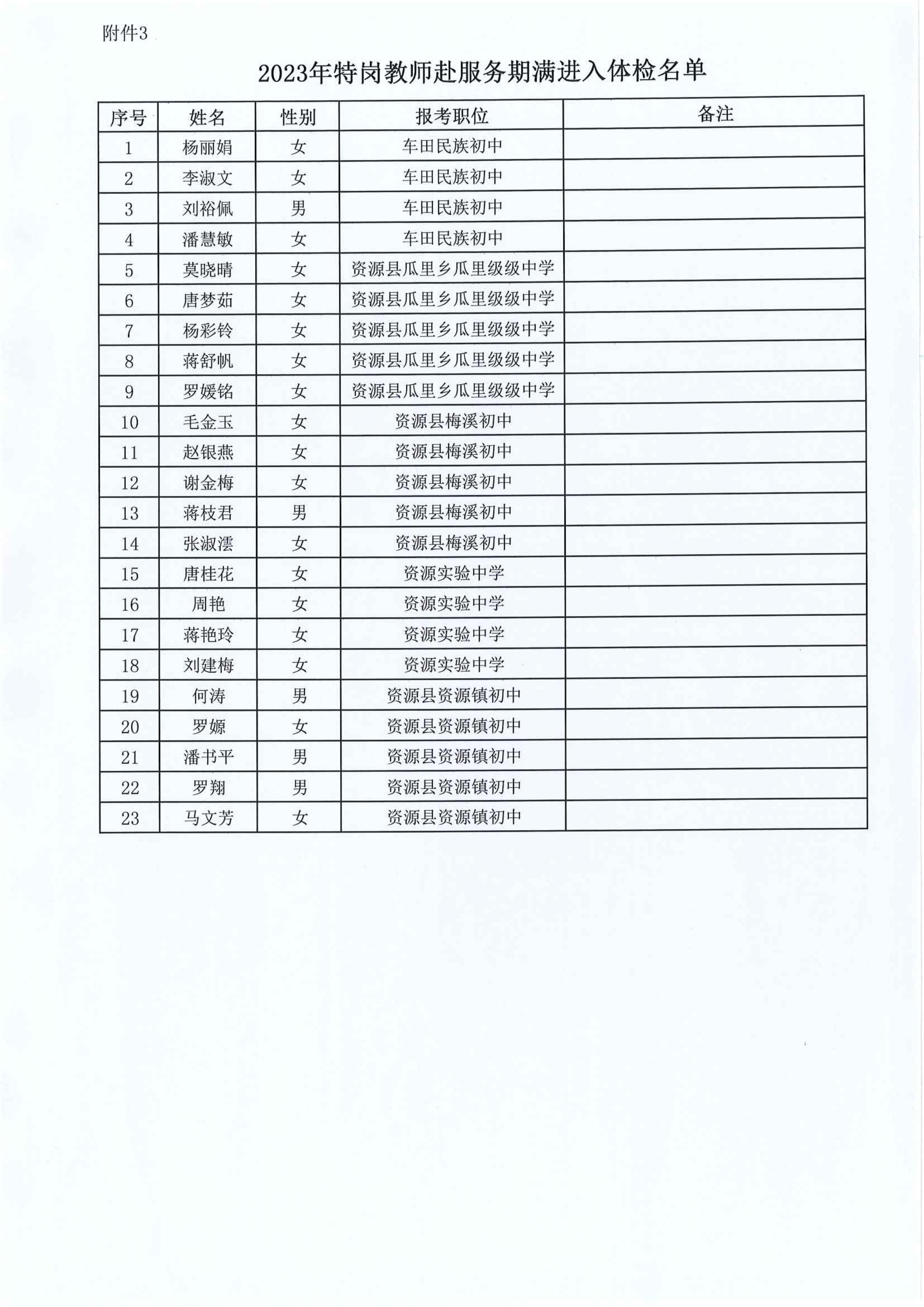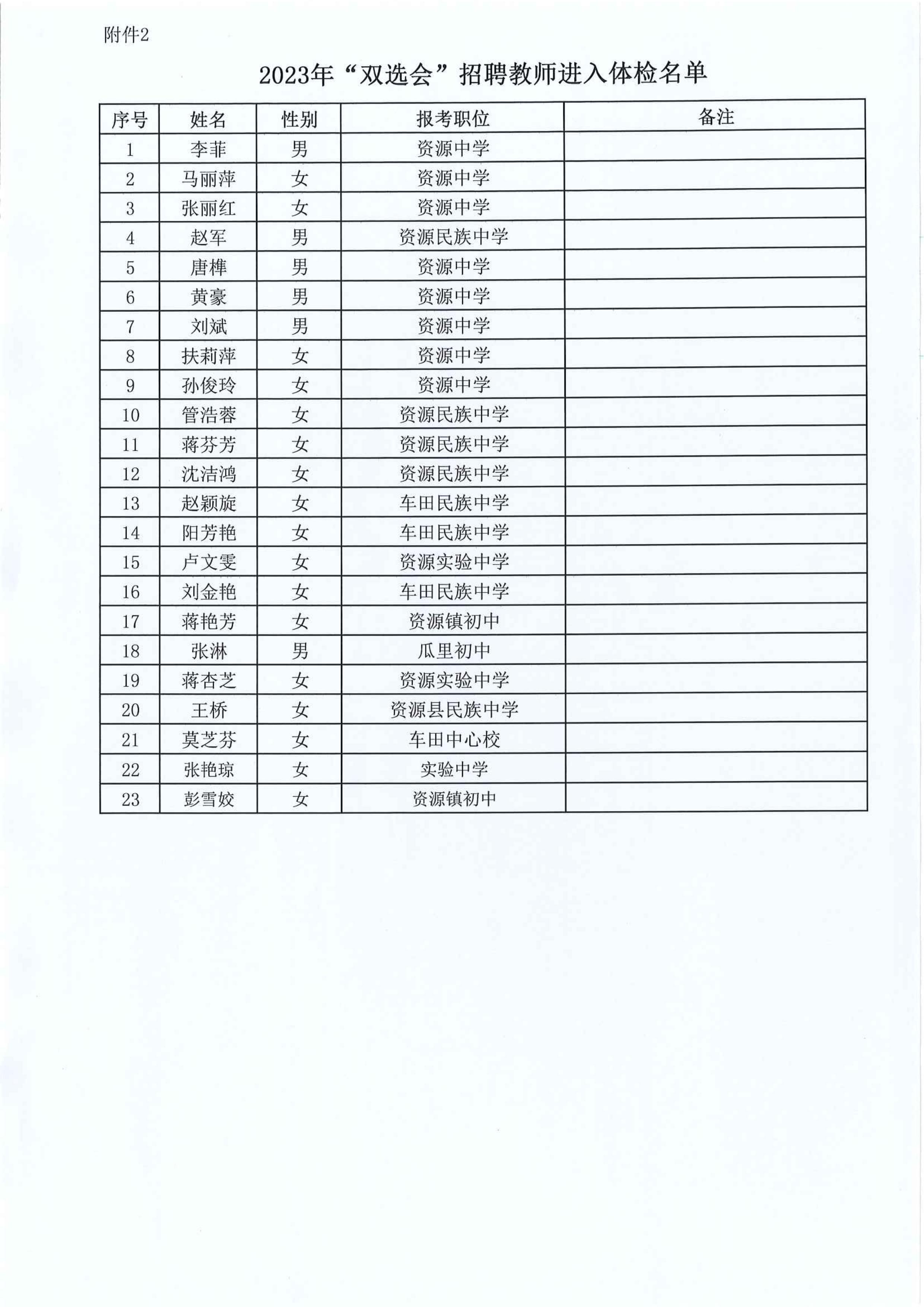 原文標題:2023年資源縣教育系統(tǒng)擬聘用人員體檢有關事項的公告_公告公示_桂林市教育局