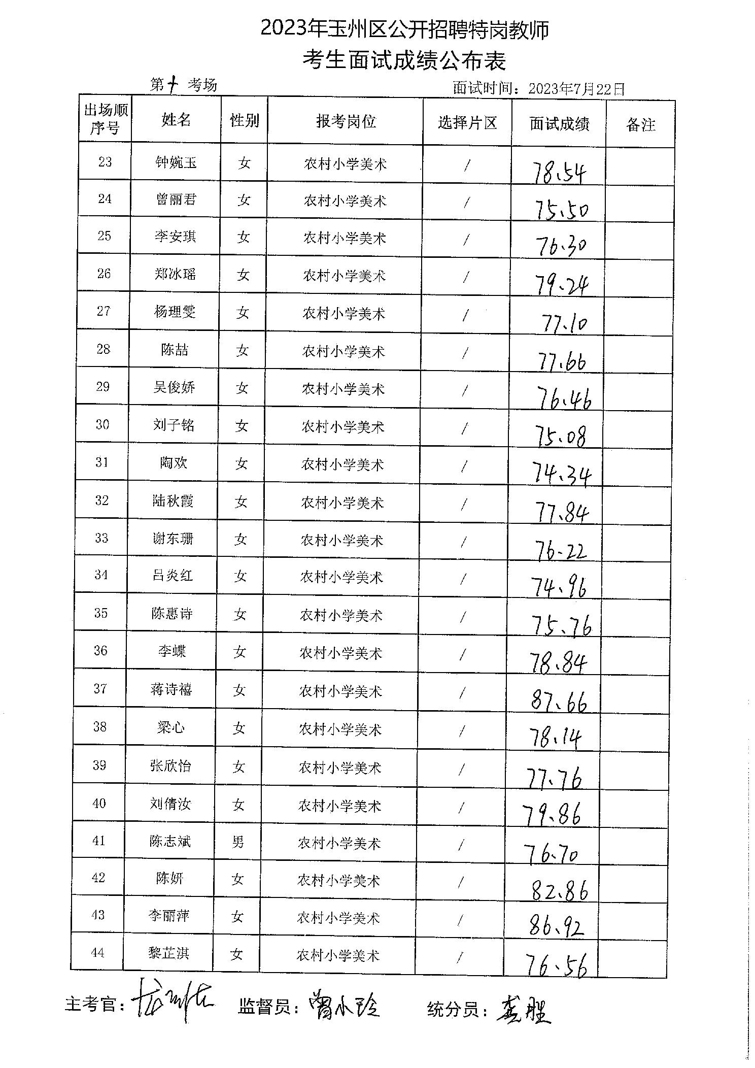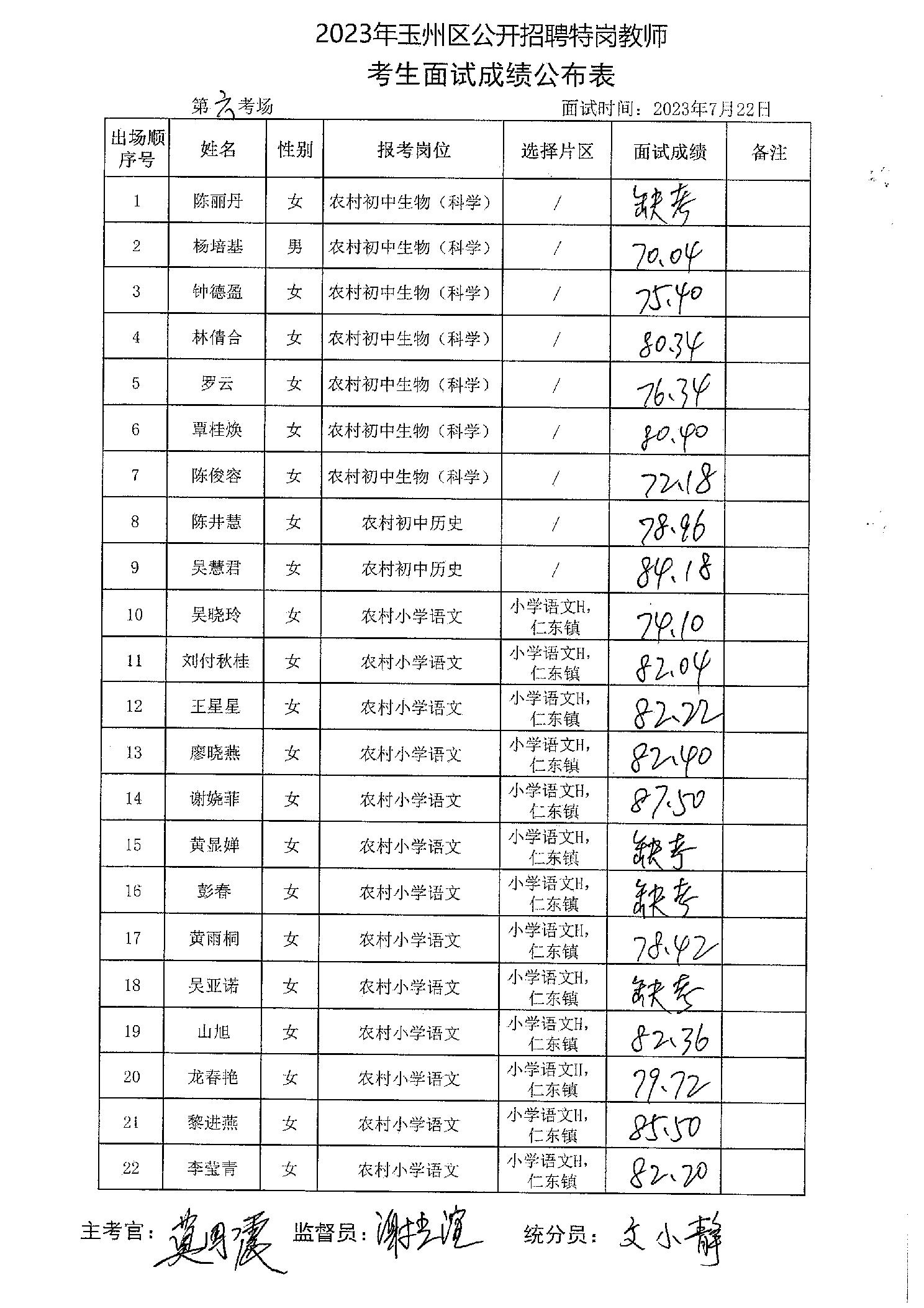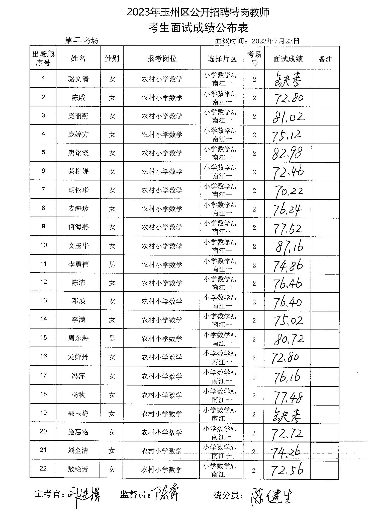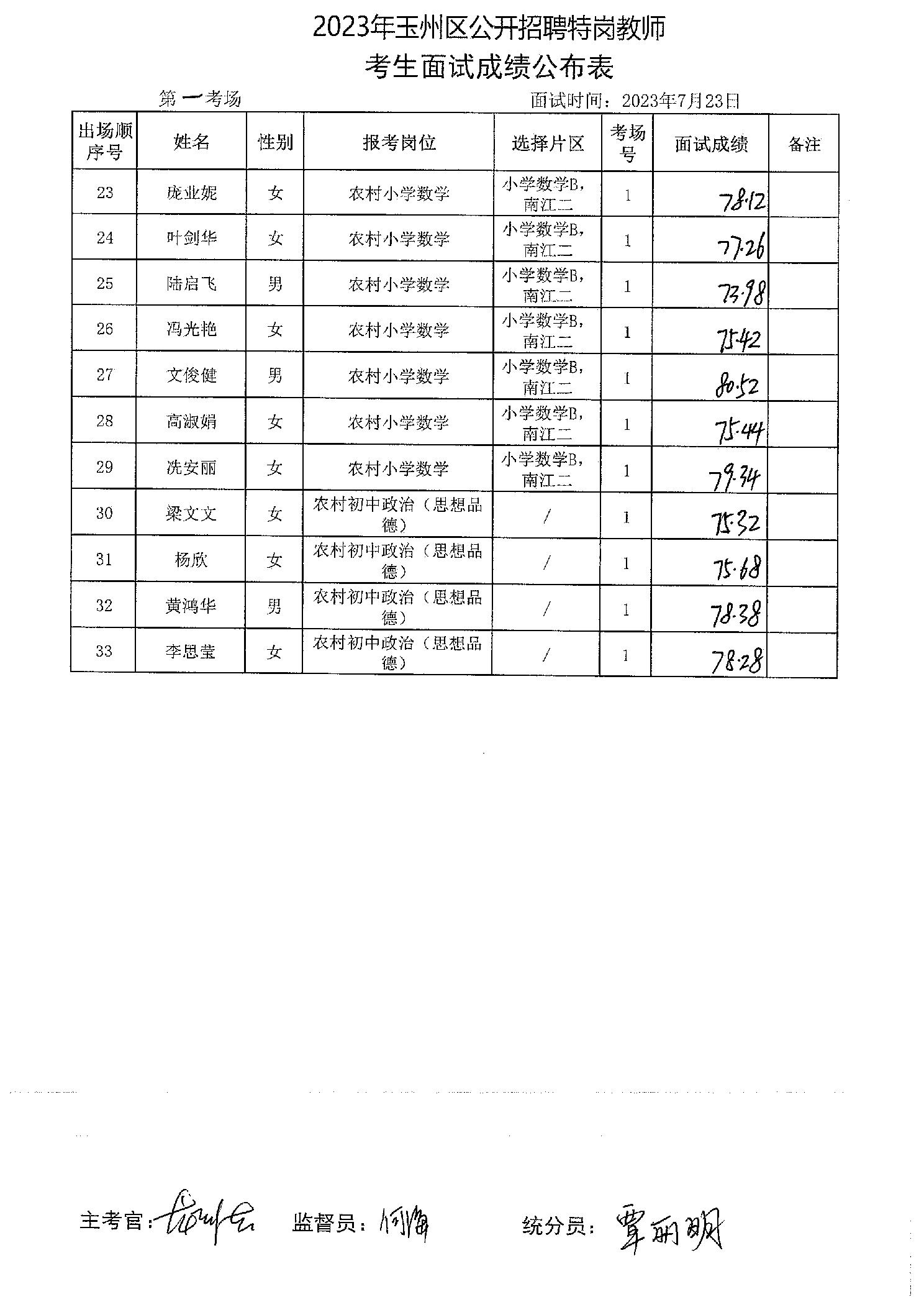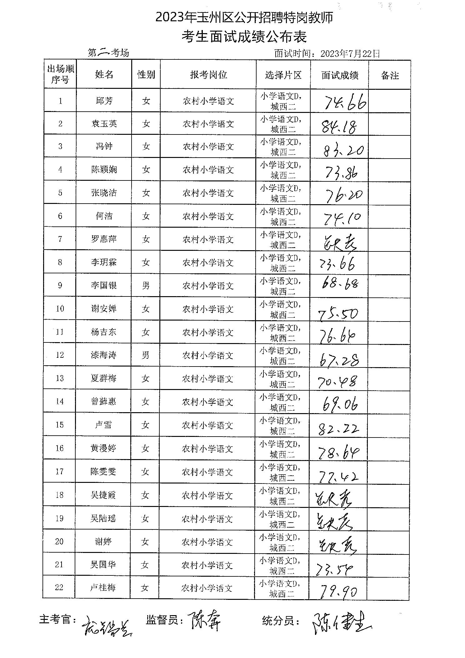 原文標題:2023年玉州區(qū)公開招聘特崗教師考生面試成績