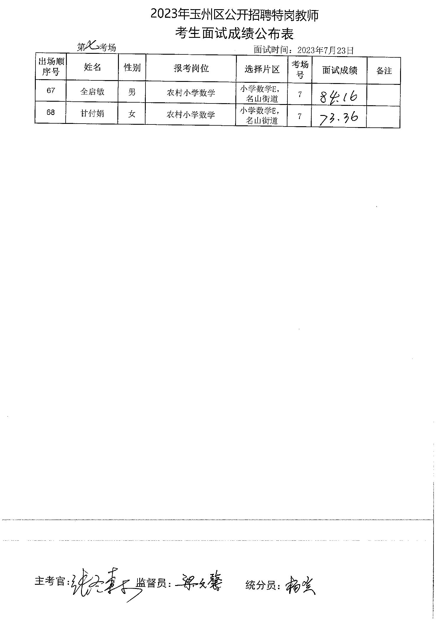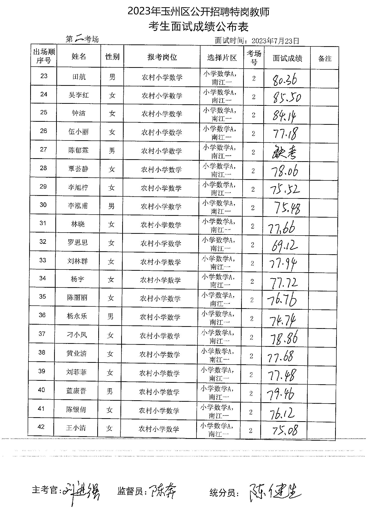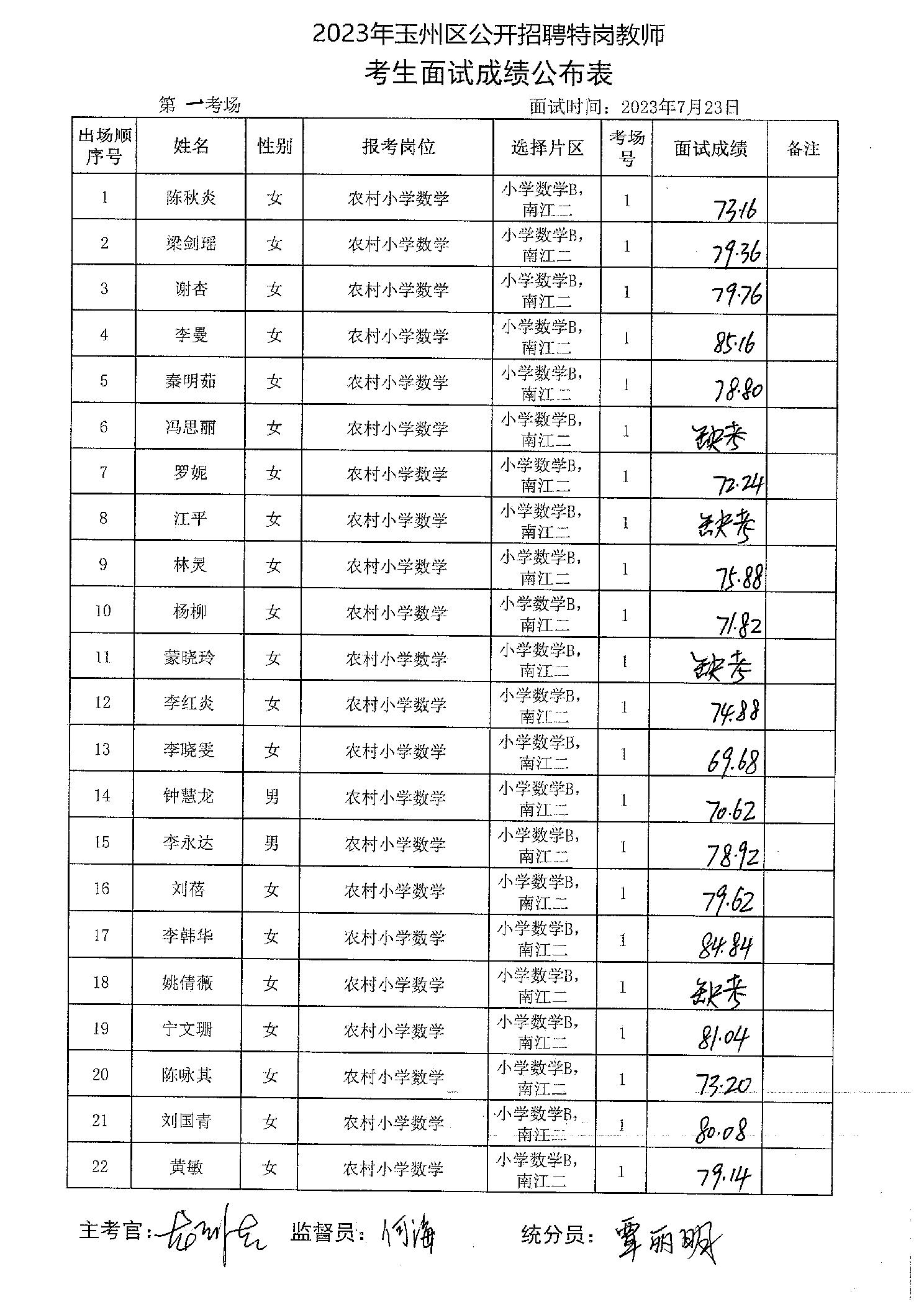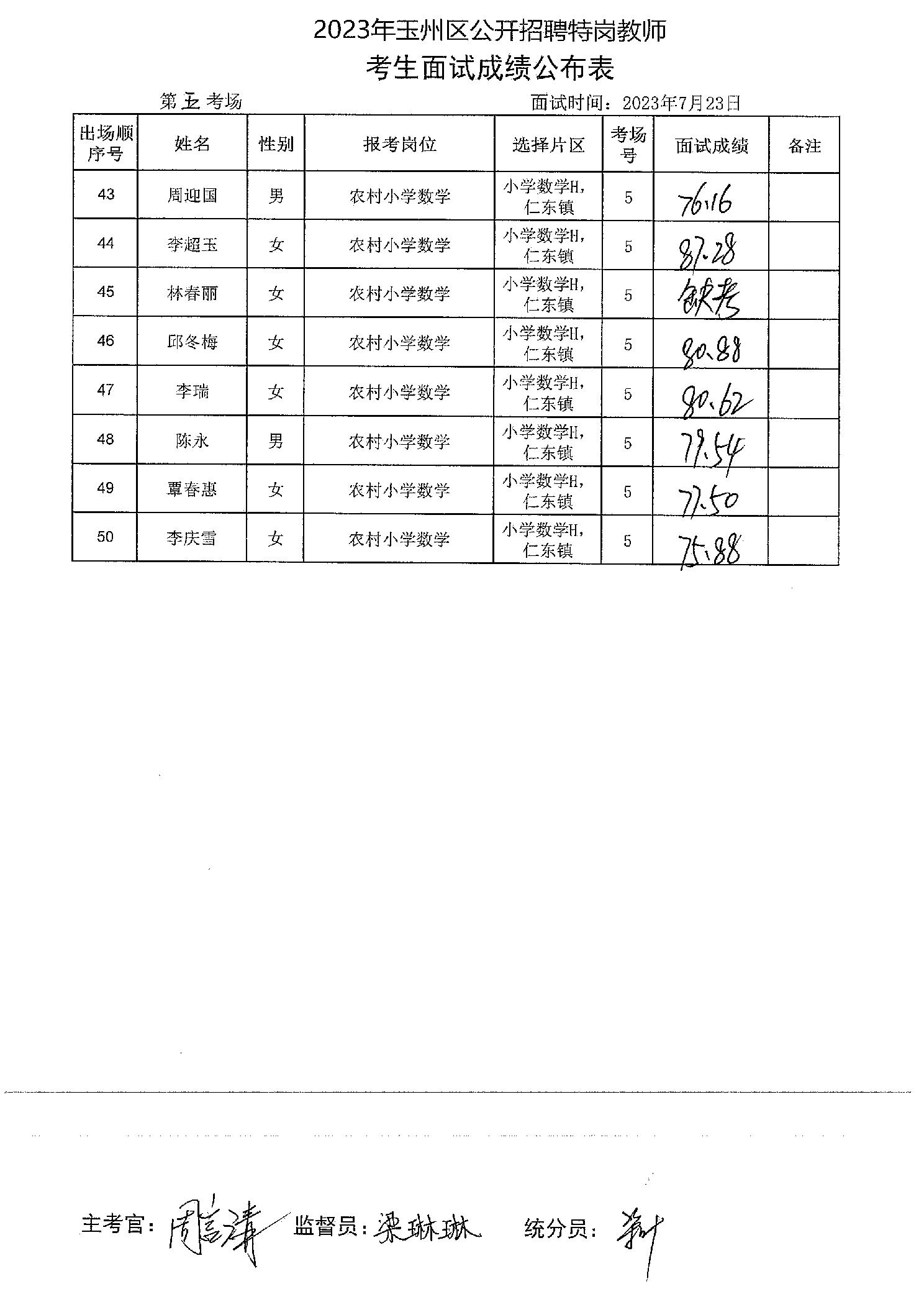 原文標題:2023年玉州區(qū)公開招聘特崗教師考生面試成績